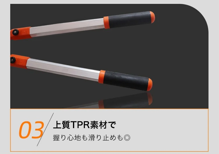 軽量設計の伸縮式剪定鋏を手に持つ様子