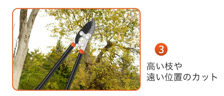伸縮式剪定鋏を使って安全に枝を切るシーン